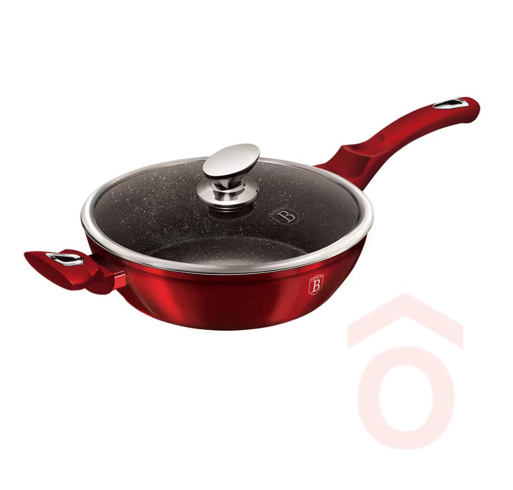 Serpenyő 28x7,5cm 3,8l alu+fedő mély Metal.burgundy BH/1260N