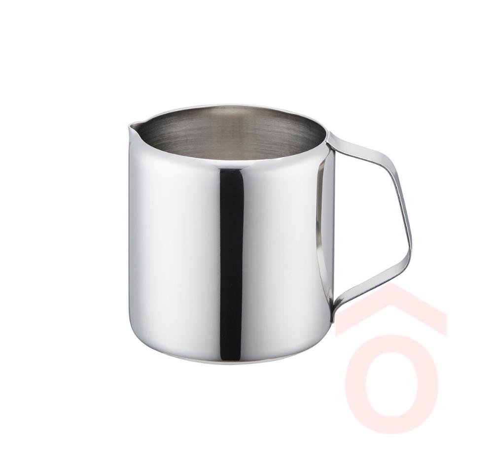 Rozsdamentes acél tejkiöntő. Karcmentes folyékony mosószerrel mosható.