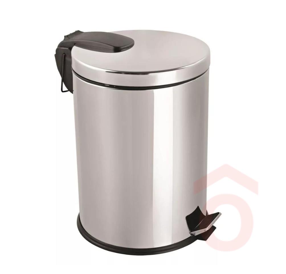 Rozsdamentes acél pedálos szemetes, kivehető műanyag vödörrel.
