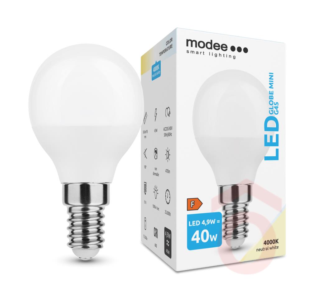 Led mini G45 alakú izzó 4,9w teljesítményű, ami hagyományos izzóknál 40w-al egyenértékű. 180° megvilágítási szöget fed le. A LED fénye igencsak szépen visszaadja a körülöttünk lévő környezet színeit.