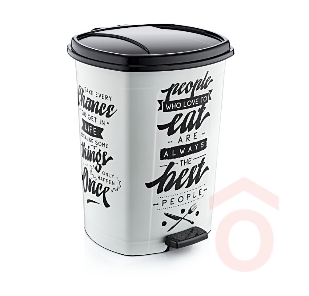 Szemetes pedálos 50L műanyag fehér/fekete D096X137