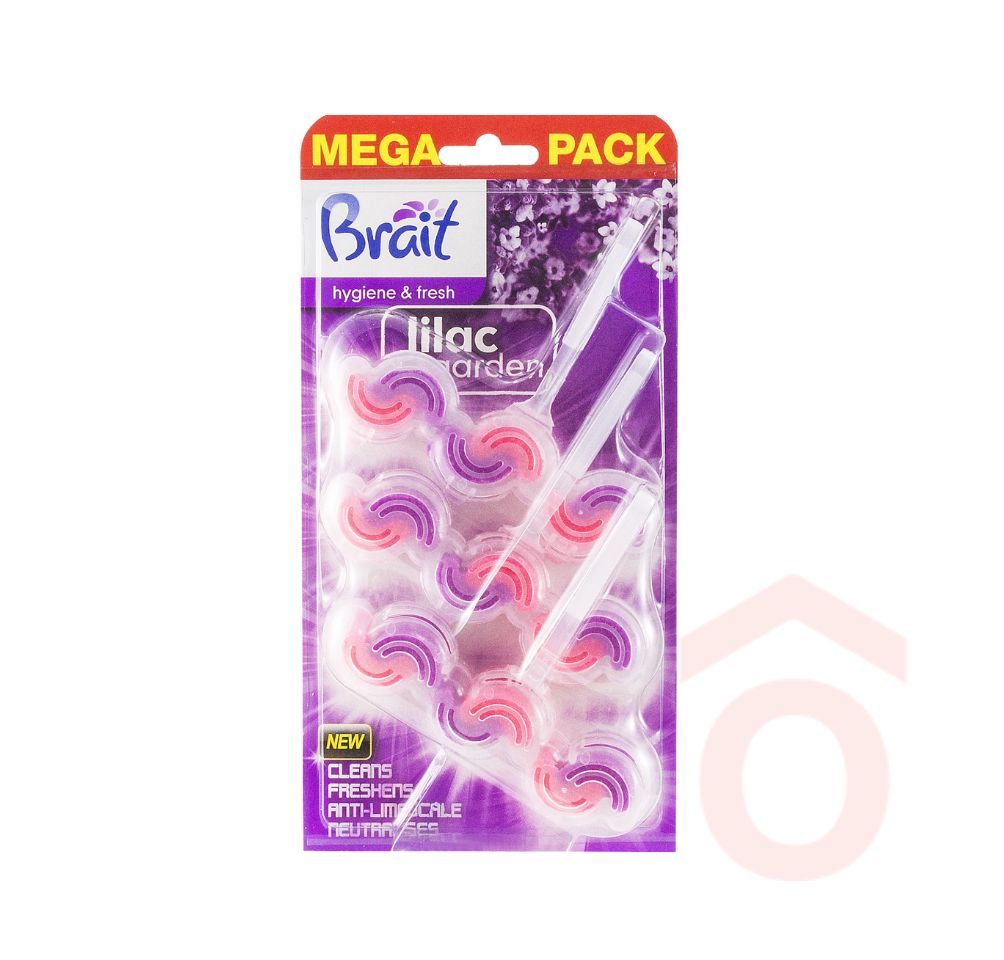A Brait kétfázisú WC tisztító- és illatosító blokk hatékonyan tisztítja a WC kagylót, miközben megelőzi a vízkő lerakódását. Erősen habzik, minden öblítésnél frissít, és hosszan tartó orgona illattal tölti meg a helyiséget.