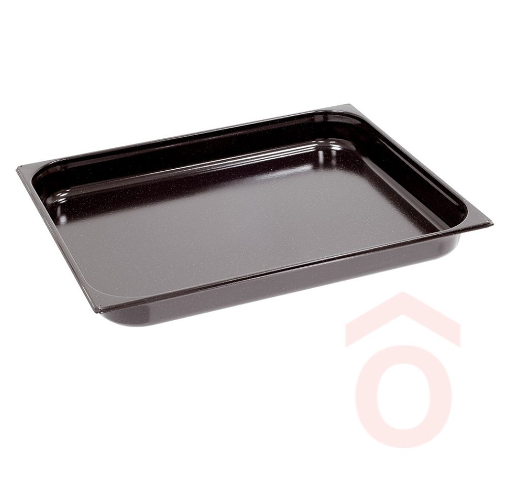 Rozsdamentes acélból készült, zománcozott 2/1-es GN tepsi, sütésre használható -20-tól + 300°C-ig. Egymásba rakható, így könnyen tárolható. Mosogatógépben mosható. Ajánjuk éttermeknek, szállodáknak, kórházaknak, iskoláknak és egyéb nagykonyhai felhasználás céljából. Savas és lúgos kémhatásnak ellenáll, rozsdamentes anyagának köszönhetően a legszélsőségesebb körülmények között sem rozsdásodik.