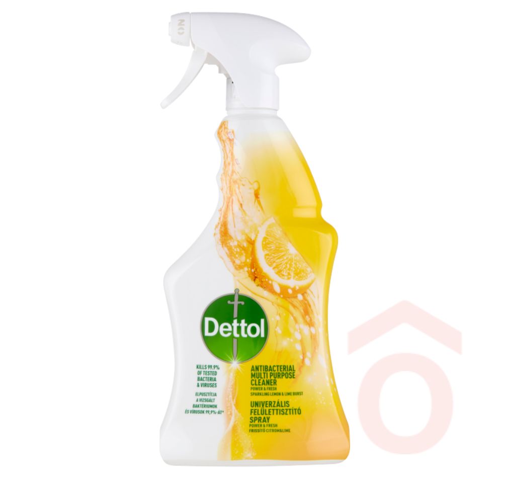 A Dettol antibakteriális felülettisztító spray hatékony megoldás a konyhai, fürdőszobai és egyéb háztartási felületek higiénikus tisztításához. Speciális összetétele elpusztítja a vizsgált baktériumok és vírusok 99,9%-át*, beleértve az MRSA-t, az Influenza A (H1N1) vírust és az élesztőgombákat.