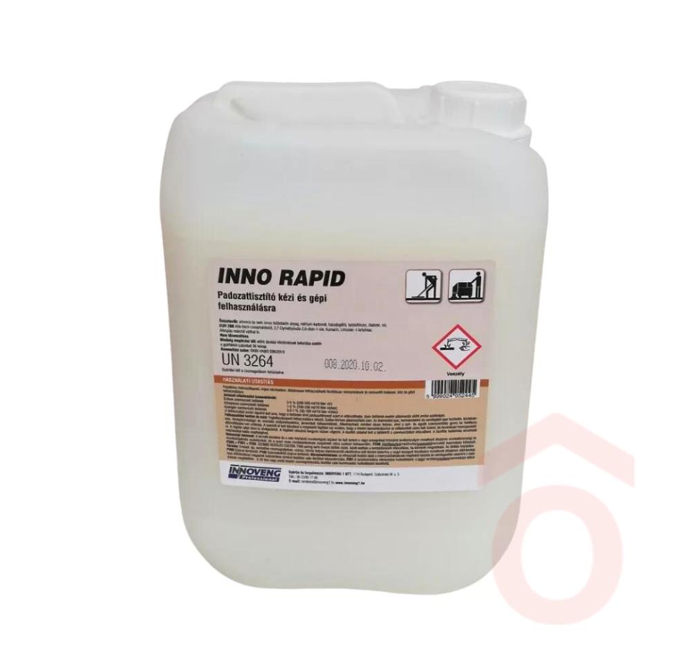 Az Inno Rapid egy lúgos kémhatású, folyékony halmazállapotú tisztítószer koncentrátum, amely kiváló nedvesítő hatásának köszönhetően gyorsan és hatékonyan eltávolítja a zsíros és egyéb szennyeződéseket. Széles körben alkalmazható padozattisztításra kézi és gépi módszerekkel egyaránt.