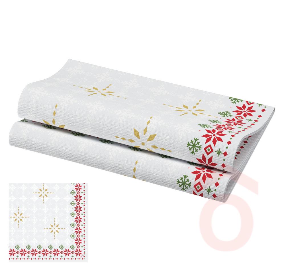 A Duni textilhatású papírszalvéta magas grammsúlyú alapanyagból készült, ezért ideálisan hajtogatható, így különösen jó választás igényes asztalterítéshez és professzionális vendéglátási felhasználáshoz. A 40 × 40 cm-es méret elegáns megjelenést biztosít, a Tradition szín pedig klasszikus, kifinomult hangulatot ad az asztalképnek, legyen szó ünnepi alkalmakról vagy mindennapi szervírozásról.