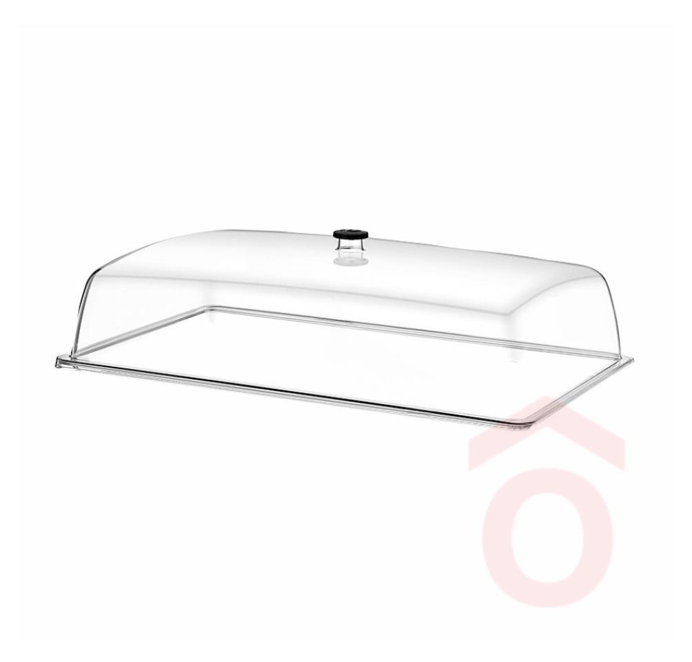 Polikarbonátból készült, GN 1/1 edényekkel kompatibilis búra. Nem ajánlott nehéz vegyszerekkel tisztítani. Mosható ipari mosogatógépekben.