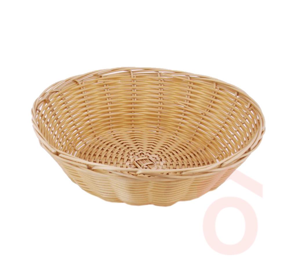 Műanyagból készült kerek rattan nádszövet mintájú kosár.