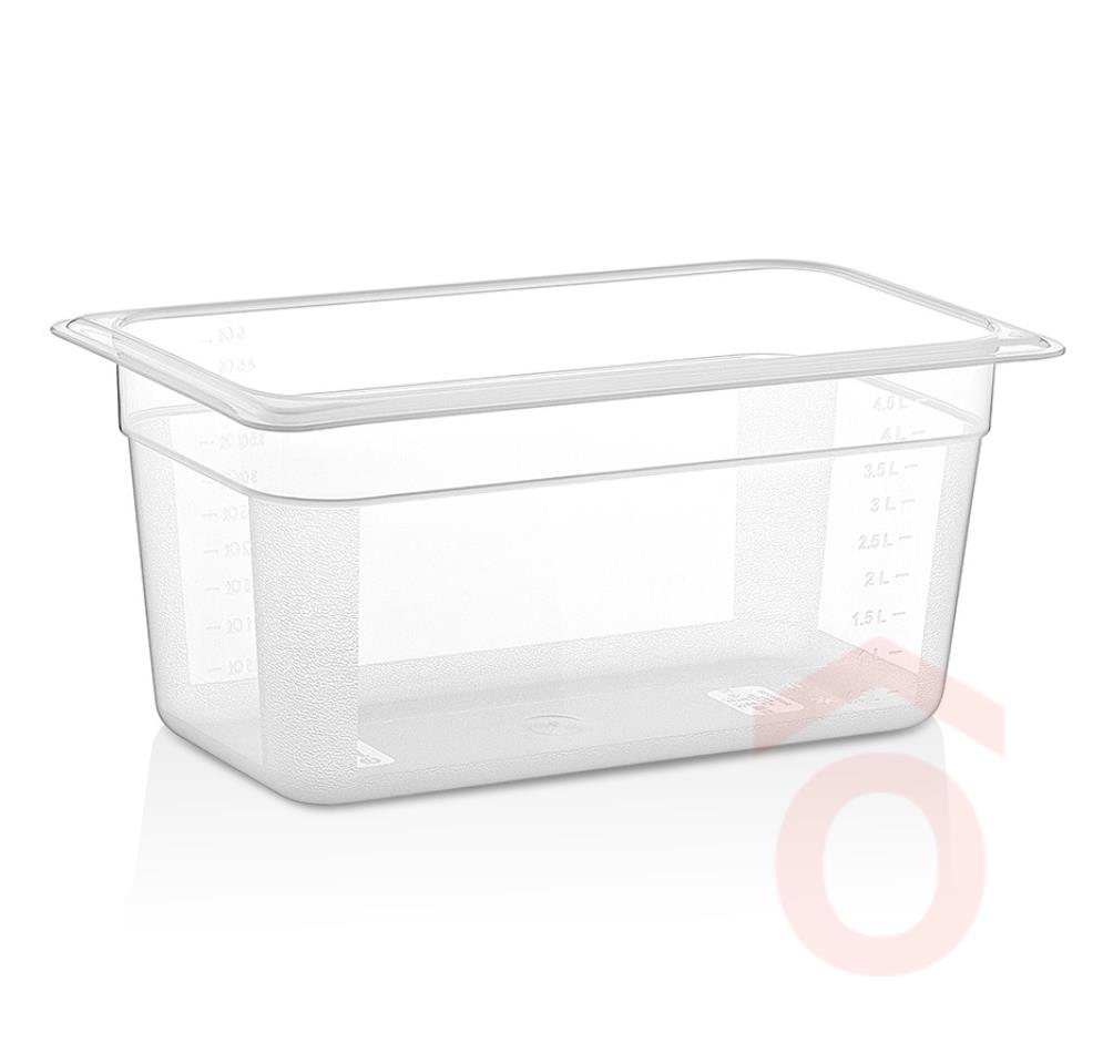 Polipropilénből készült 1/3-os GN edény, ételek tárolására, szállítására, bemutatására használt tároló edény. Ellenálló hőmérséklet -40-tól + 70°C között. Egymásba rakható. Nem használható sütőben. Ne melegítse az ételeket tűzön vagy grillen. Mosható ipari mosogatógépekben.Ne érintkezzen pengékkel, késekkel vagy más éles dolgokkal. Tisztítás közben ne használjon acél súrolót. Mikrohullámú sütőkkel kompatibilis