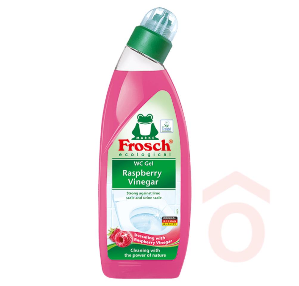 A Frosch málna illatú WC tisztító gél természetes málnaecet-tartalmának köszönhetően hatékonyan eltávolítja a vízkövet, vizeletlerakódásokat és egyéb szennyeződéseket – még a WC pereme alól is. A kellemetlen szagokat is megszünteti, miközben friss málna illatot hagy maga után.