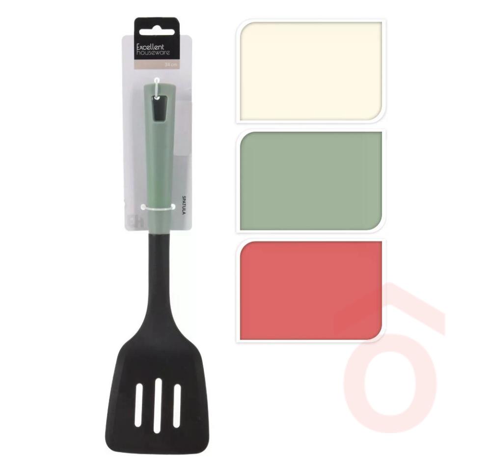 Hőálló műanyagból készült tálaló eszköz Ajánljuk bevonatos edények használatához, mert a műanyag nem sérti fel a márvány, gránit, kerámia, vagy a teflon bevonatos edény anyagát.