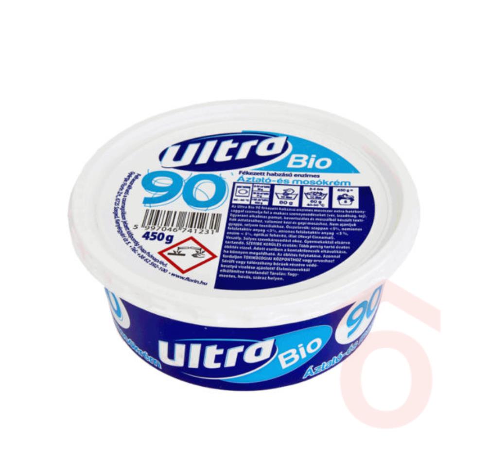 Az Ultra Bio 90 mosókrém nagyhatású, fékezett habzású mosószer, amely kézi és gépi mosáshoz egyaránt alkalmas. Optikai fehérítőt is tartalmaz, így fokozza a ruhák ragyogását, miközben a mosógépet is védi a vízkőképződéstől. Ideális választás erősen szennyezett ruhákhoz.
