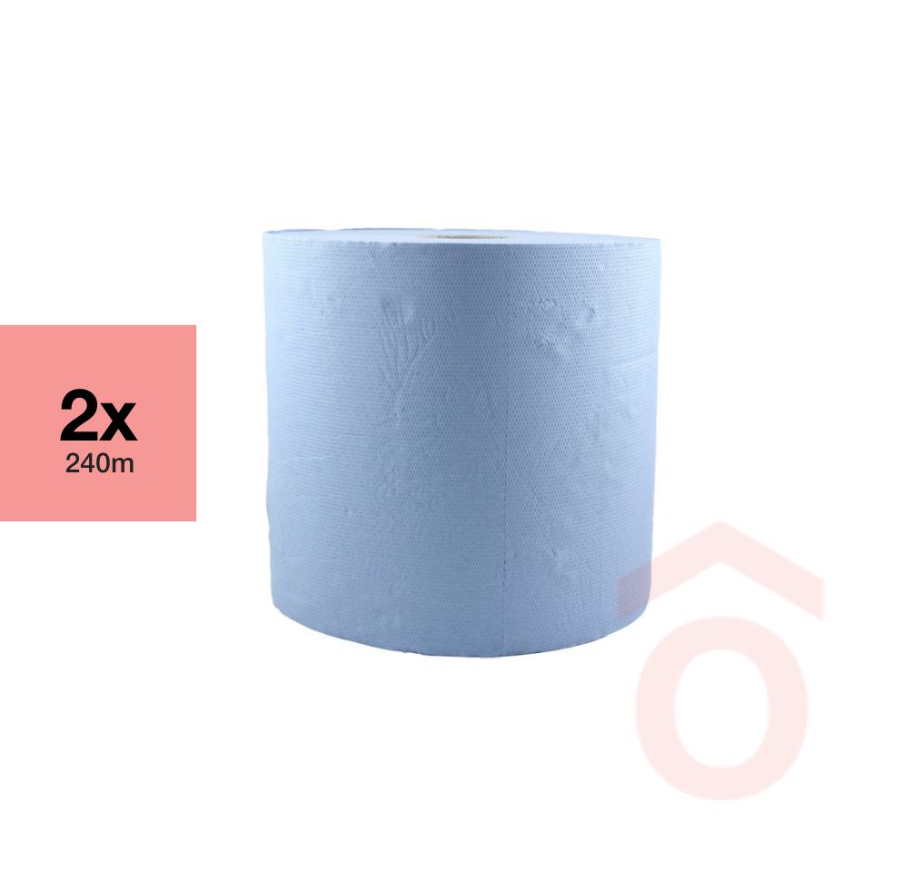 Praktikus, nagyméretű, 2 rétegű tekercses kéztörlő, amely kék színben kapható. 240 m hosszú, extra hosszú tekercse ideális nagy forgalmú helyekre és ipari környezetekbe, ahol fontos a folyamatos ellátás.