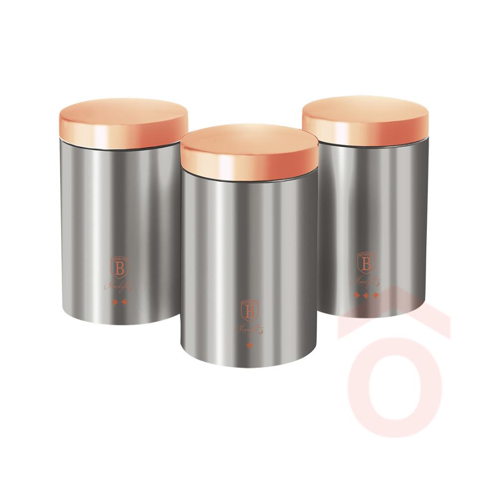 A Berlinger Haus Moonlight Collection rozsdamentes acél tárolódobozait kifejezetten konyhai alapanyagok esztétikus és higiénikus tárolására tervezték. A 3 részes szett ideális választás cukor, kávé, tea, liszt, tészták, szárított fűszerek vagy gyümölcsök rendszerezett tárolására.