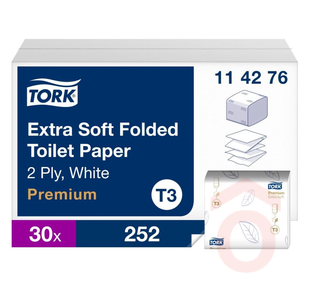 A Tork Extra Soft Folded hajtogatott toalettpapír ideális választás alacsony és közepes forgalmú mosdókhoz, különösen az egészségügyi és vendéglátó (HoReCa) szektorban. A hajtogatott kialakítás laponkénti, higénikus adagolást tesz lehetővé, csökkentve a pazarlást és a karbantartási költségeket. A puha tapintású, 2 rétegű papír fehér színben, esztétikus megjelenést biztosít, ezzel is hozzájárulva a pozitív vendégélményhez. Kompatibilis a T3 hajtogatott toalettpapír adagolórendszerrel. A termék 30 csomagos karton kiszerelésben érkezik, amely nem bontható.
