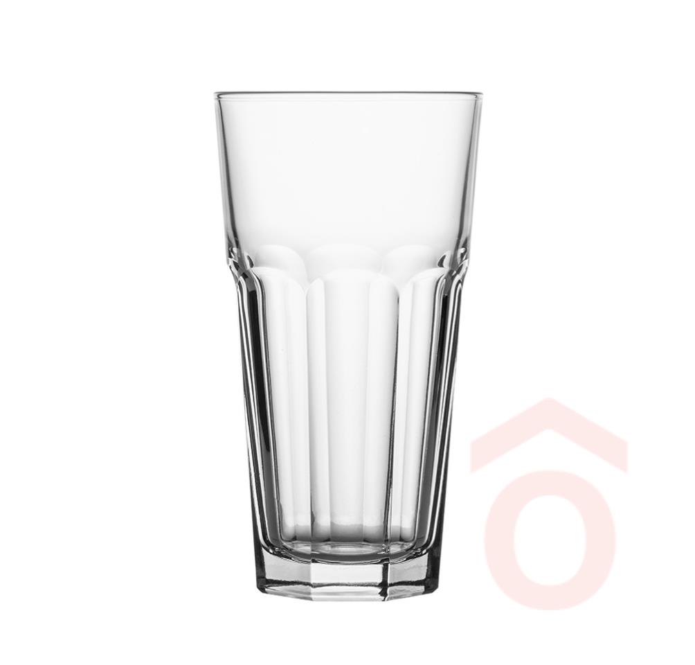 Vastag, bordázott üveg, üdítős-limonádés pohár. Mosogatógépben mosható.
