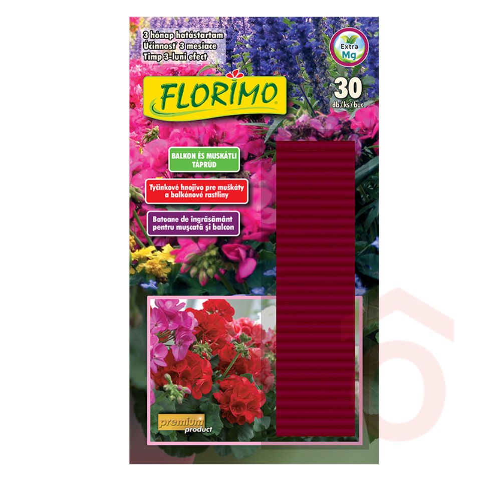 Balkonnövények, muskátlik fajtái, egynyári virágok lassú, hosszú időn át tartó tápanyag utánpótlására 12 héten át. Kényelmes megoldás a virágzó növények tápanyag-utánpótlására. A tápanyagok egyenletes felszabadulása ideális tápanyagfelvételt biztosít, virágzásindító, virágzásfokozó hatása révén a növények erőteljesek lesznek.