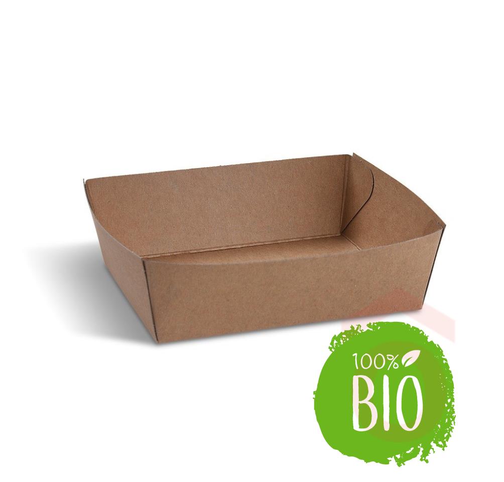 Környezetbarát megoldás burgonyás ételek tálalásához! Ez a natúr kraft barna papírtálca ideális büfék, éttermek vagy rendezvények számára, ahol fontos a fenntarthatóság és a praktikum. A lebomló anyagból készült BIO tálca stabil kialakításának köszönhetõen tökéletesen alkalmas forró vagy olajos ételek kiszolgálására is.