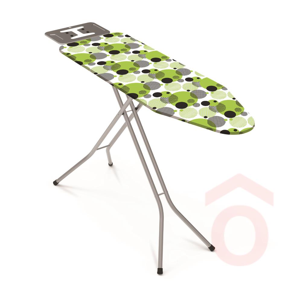 50%-os pamut- és 50%-os polyester huzattal rendelkező, állítható magasságú vasalódeszka.