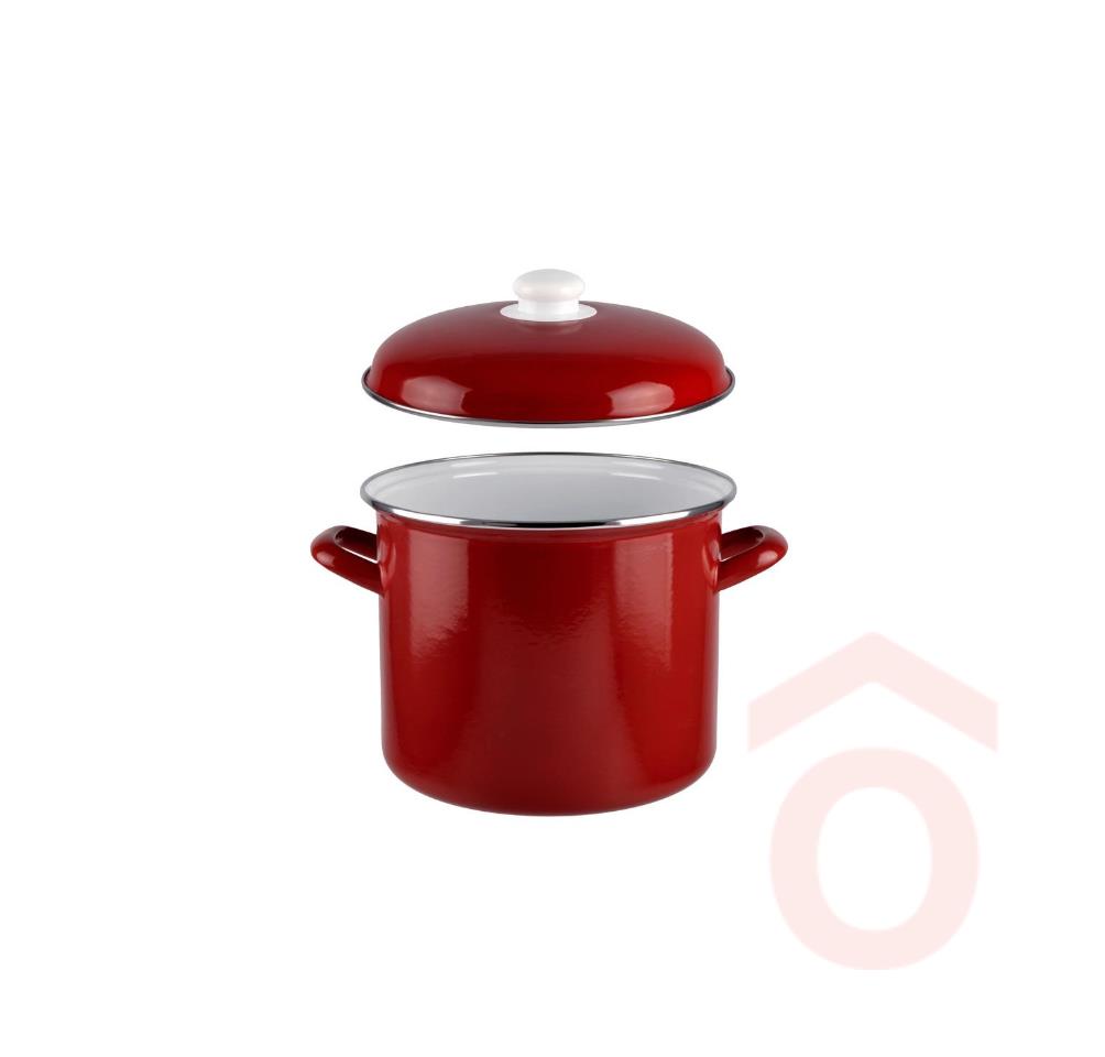 Klasszikus piros zománcozott acél fazék, melyek használhatóak gáz-, elektromos-, kerámia-, indukciós főzőfelületen egyaránt.