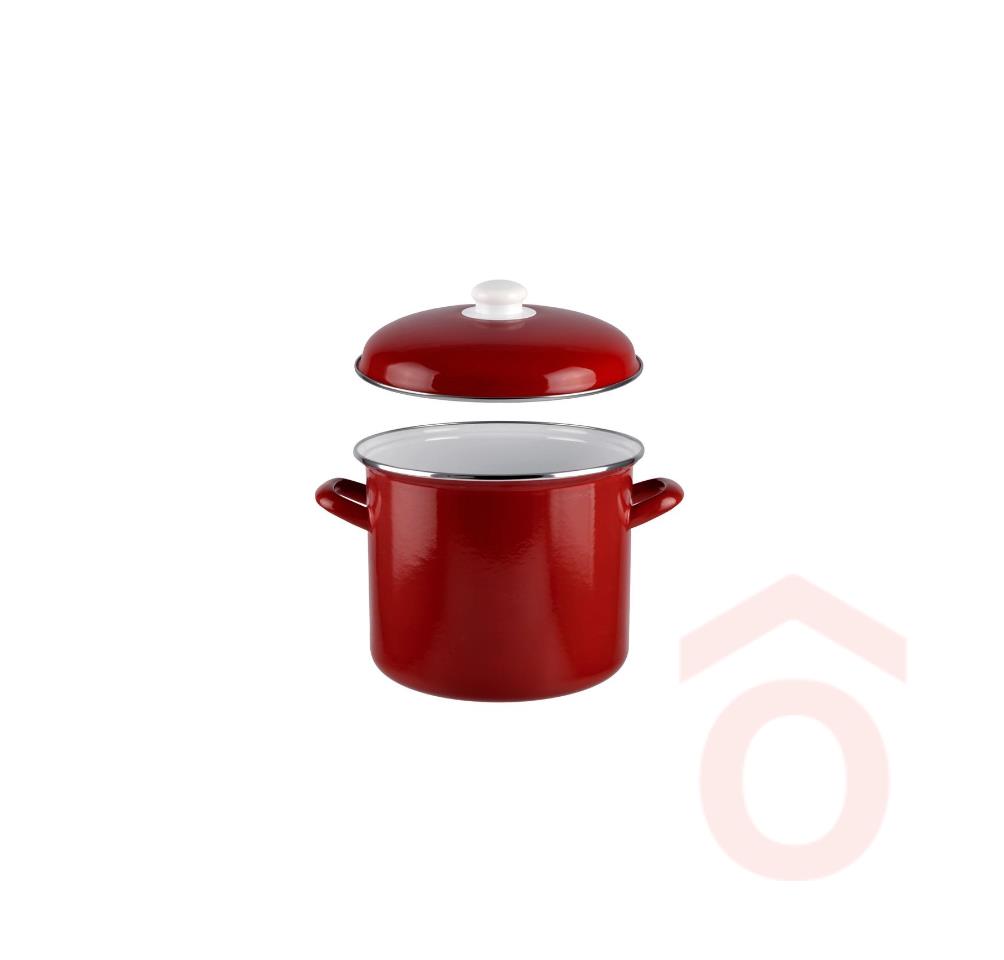 Klasszikus piros zománcozott acél fazék, melyek használhatóak gáz-, elektromos-, kerámia-, indukciós főzőfelületen egyaránt.