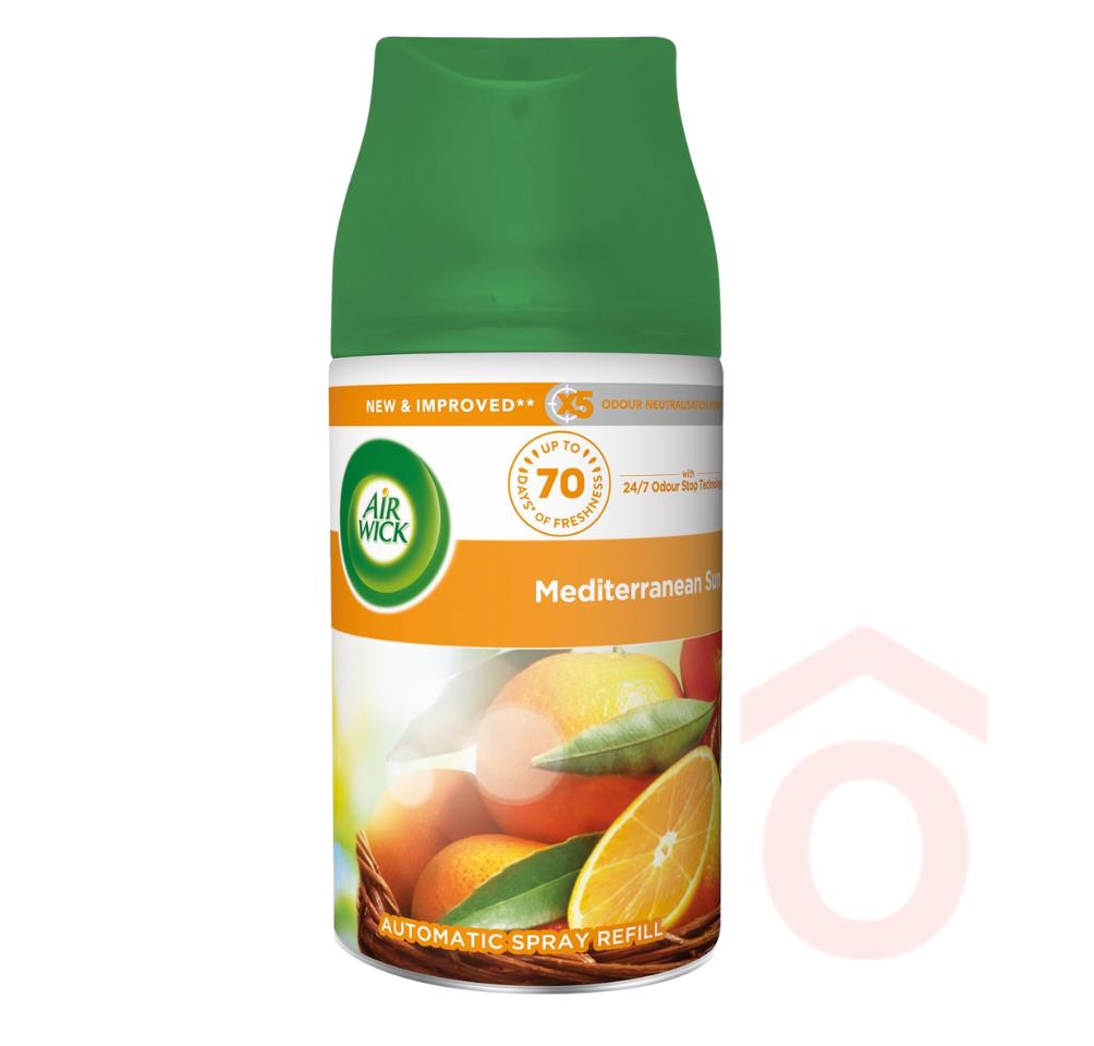Az Air Wick Freshmatic utántöltő természetes illóolajokat tartalmaz, és akár 60 napig tartó frissességet biztosít – a legalacsonyabb intenzitás mellett. A Mediterranean Sun illat napérlelte narancs illatával idézi meg a nyári mediterrán hangulatot.