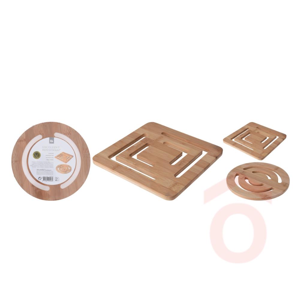A bambusz nemcsak esztétikus, de strapabíró és környezetkímélõ is. Használata megakadályozza az égési nyomok kialakulását a felületeken és biztonságosabbá teszi a meleg edények kezelését.
