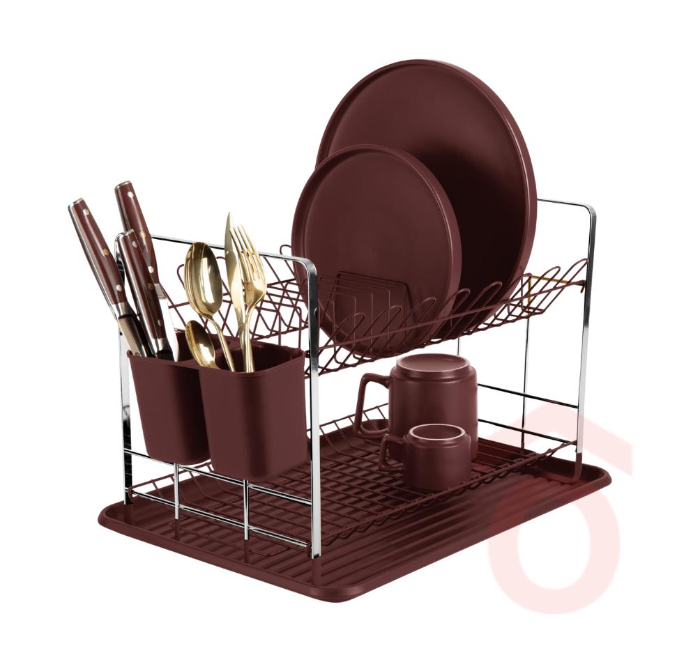 A tartós műanyag és vas kivitel stabilitást és hosszú távú használatot támogat, így kisebb és nagyobb edények szárítására is ideális. A hozzátartozó tálca felfogja a lecsöppenő vizet, így a pult tisztán tartható, a szárító pedig rendezett képet ad. A matt bordó szín különleges, stílusos megjelenést kölcsönöz, amely szépen illeszkedik a modern konyhai berendezéshez. Ha egy egyszerre mutatós és funkcionális edényszárítót keresel, a Leonardo termékcsalád jó választás a mindennapokra.