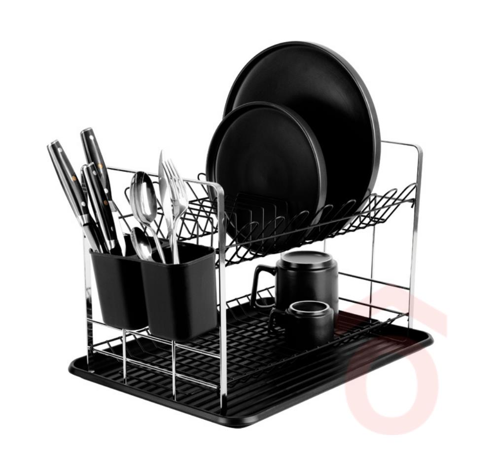 A tartós műanyag és vas kivitel stabil tartást és hosszú távú használatot támogat, így kisebb és nagyobb edények szárítására is ideális. A mellékelt tálca felfogja a lecsöppenő vizet, ami segít tisztán tartani a pultot, és kényelmesebbé teszi a mindennapi mosogatást. A matt fekete szín elegáns, időtálló megjelenést ad, amely különösen jól mutat modern, minimalista konyhában. Ha egy egyszerre mutatós és funkcionális edényszárítót keresel, ez a darab kiváló választás a mindennapi használathoz.