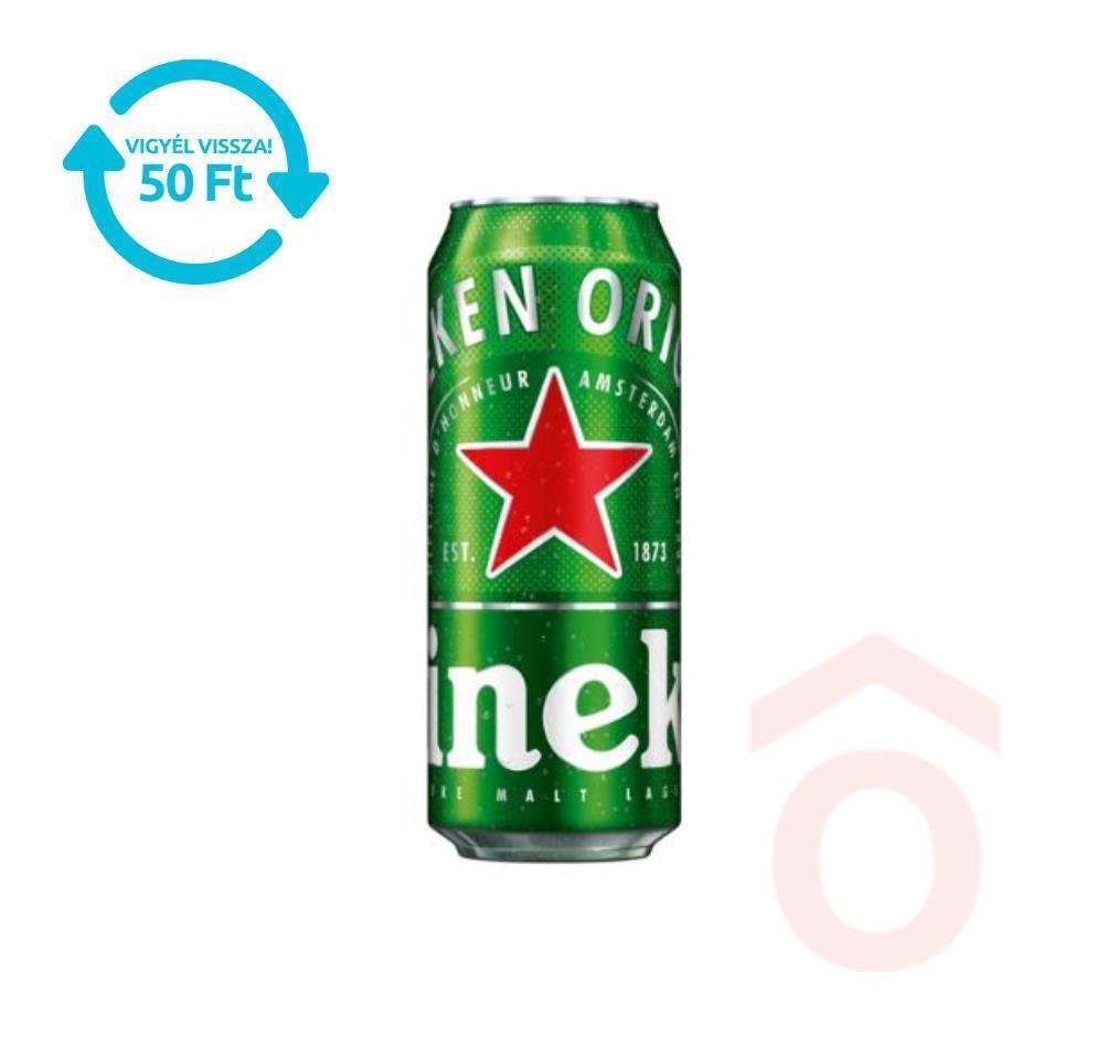 Heineken klasszikus világos lager sör visszaváltható 0,5 l‑es dobozban, amely újrahasznosítható és környezetbarát alternatívát kínál. Ez a világmárkaként ismert ital tiszta arany színű, finom habbal, kiegyensúlyozott keserű-édes ízösszhanggal hódít minden sörkedvelőt.