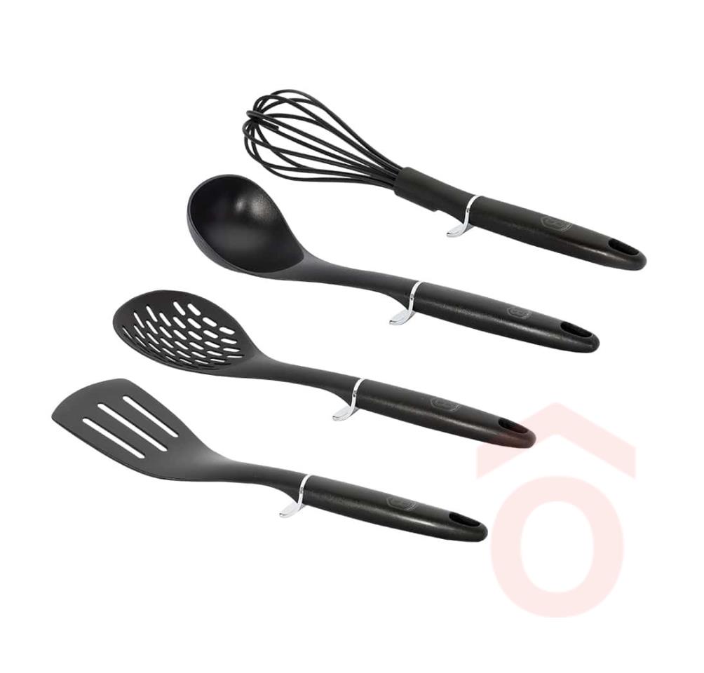 A Matte Black Collection egy elegáns és stílusos termékcsalád, amely minden konyhában jól mutat. A 4 részes konyhai eszközkészlet tartalma műanyagból készült, így könnyű és higiénikus használatot biztosít. A fekete-ezüst színkombináció pedig még inkább kiemeli a termékek eleganciáját.