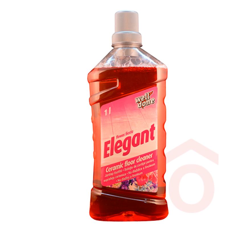 A Well Done Elegant járólap tisztító hatékonyan eltávolítja a szennyeződéseket, miközben ápolja és tisztítja a felületet. Használata után a padló foltmentesen szárad, és kellemes nyári virág illatot hagy maga után.