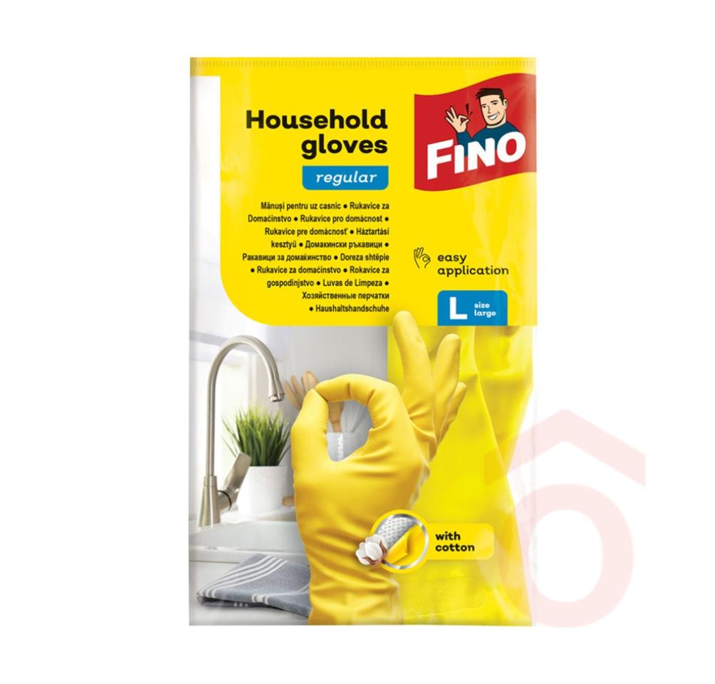 A FINO háztartási gumikesztyű védelmet nyújt a víz és nedvesség ellen. Belső része pamut réteggel van ellátva, ami kényelmes használatot biztosít.