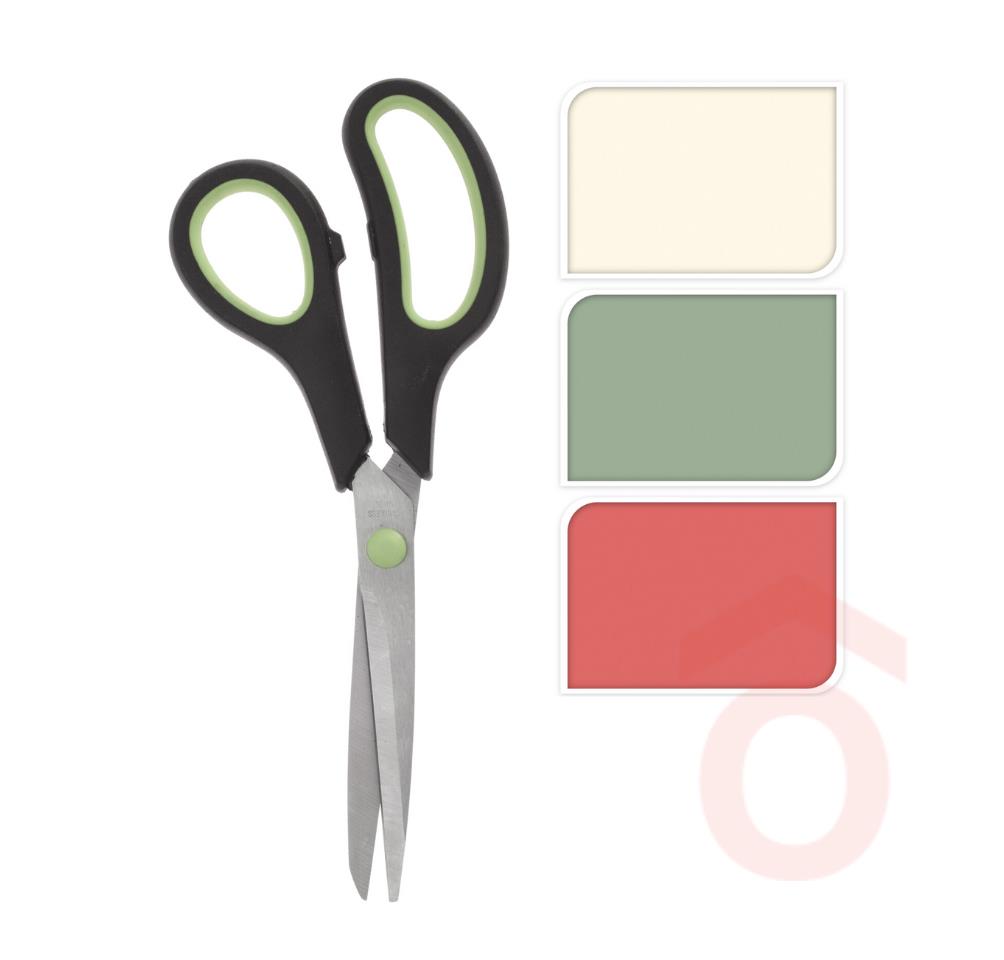 Praktikus, univerzális olló, 215 mm hosszú, gumírozott markolattal, 3 színváltozatban.