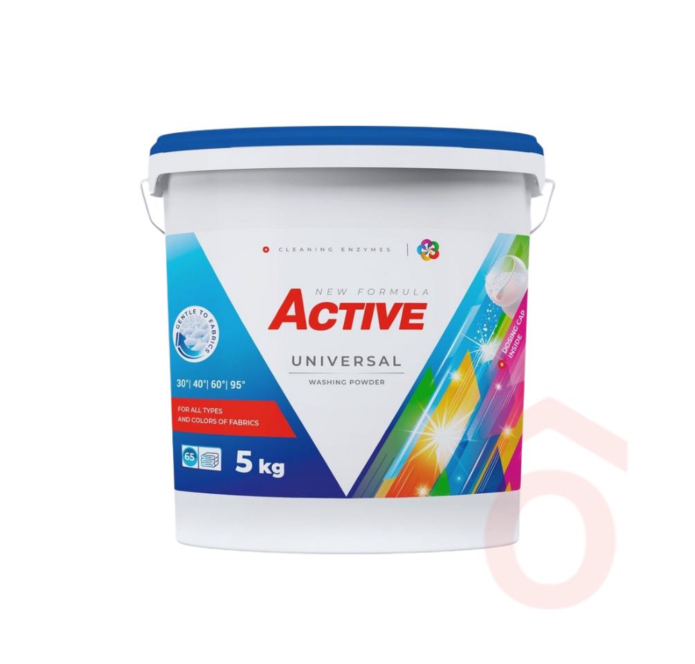 Az Active univerzális mosópor hatékony tisztítóerőt biztosít színes és fehér ruhákhoz egyaránt. Már 30 °C-on is megbízható eredményt nyújt, anélkül hogy kifakítaná a színeket vagy károsítaná a textíliát.
