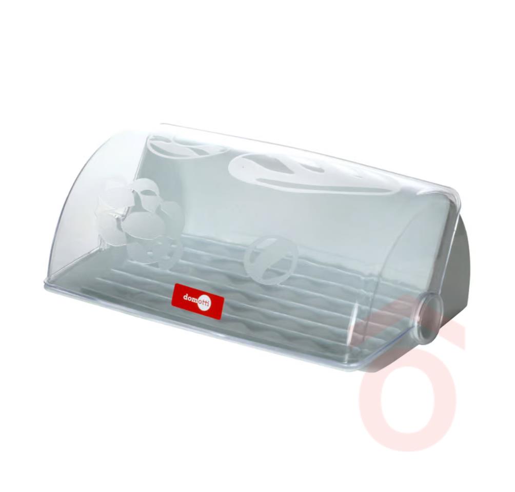 Avangarda kenyértartó szürke színben, a Domotti márkától. Kiváló minőségű műanyagból készült. Tökéletesen alkalmas különböző típusú pékáruk tárolására. Az átlátszó fedél lehetővé teszi, hogy anélkül válasszunk a sütemények közül, hogy kinyitnánk a tárolót. A profilozott, lekerekített alj összegyűjti a morzsákat, megakadályozva, hogy azok a konyhapultra essenek. Az Avangarda kenyértartónak köszönhetően a pékáru mindig friss marad.