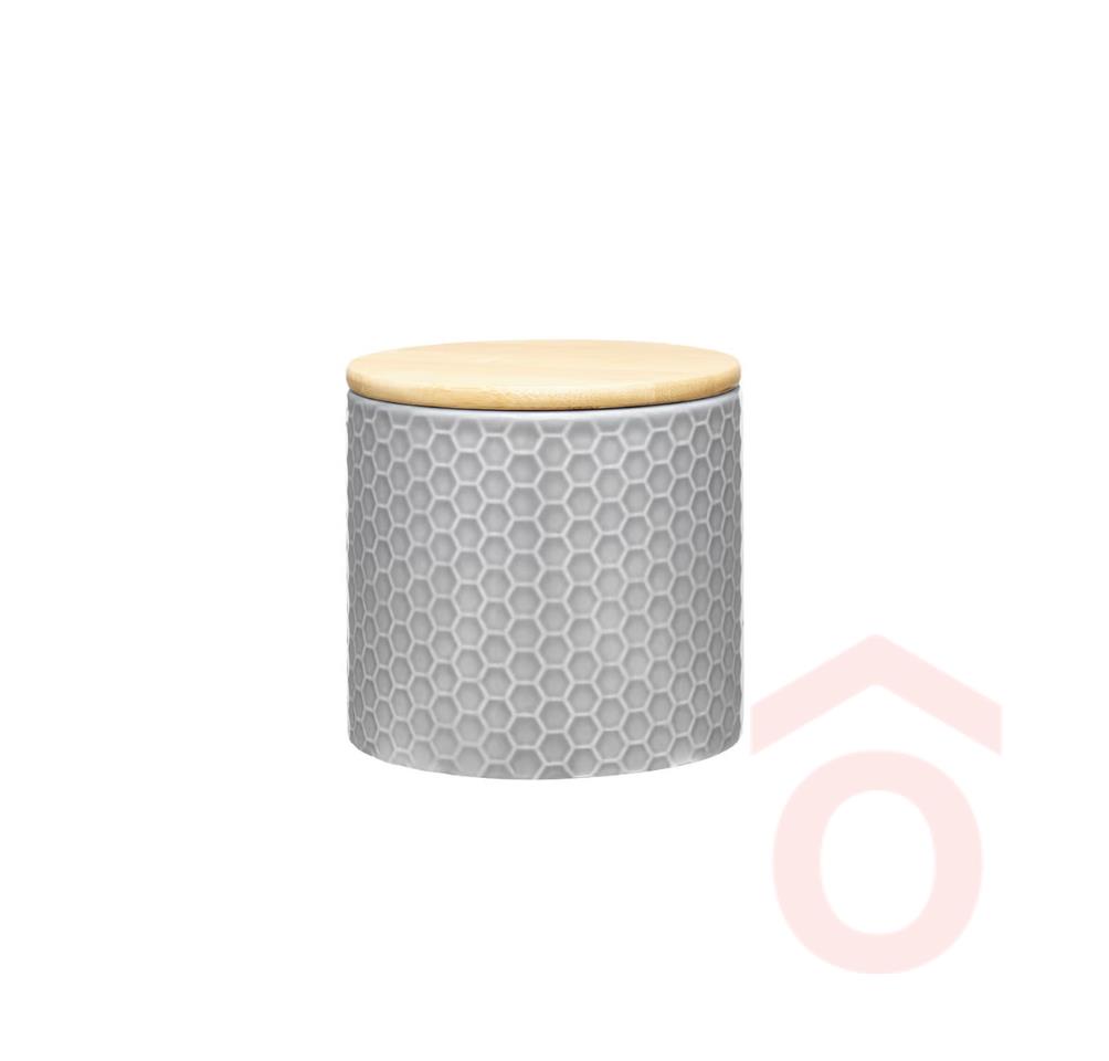 Modern stílusú tárolóedény dolomitból, amelyhez natúr bambusz fedél tartozik. A szürke szín eleganciát visz a konyhába, miközben a légmentesen záró fedél segít hosszabb ideig frissen tartani az élelmiszereket.