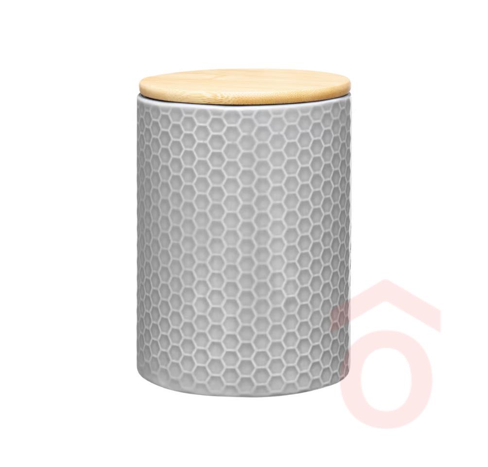 Stílusos és praktikus tárolóedény, amely tökéletes megoldást nyújt a konyhai alapanyagok rendezett és higénikus tárolásához. A dolomit test elegáns szürke színben készül, melyet egy légmentesen záró, natúr bambusz fedél tesz teljessé.