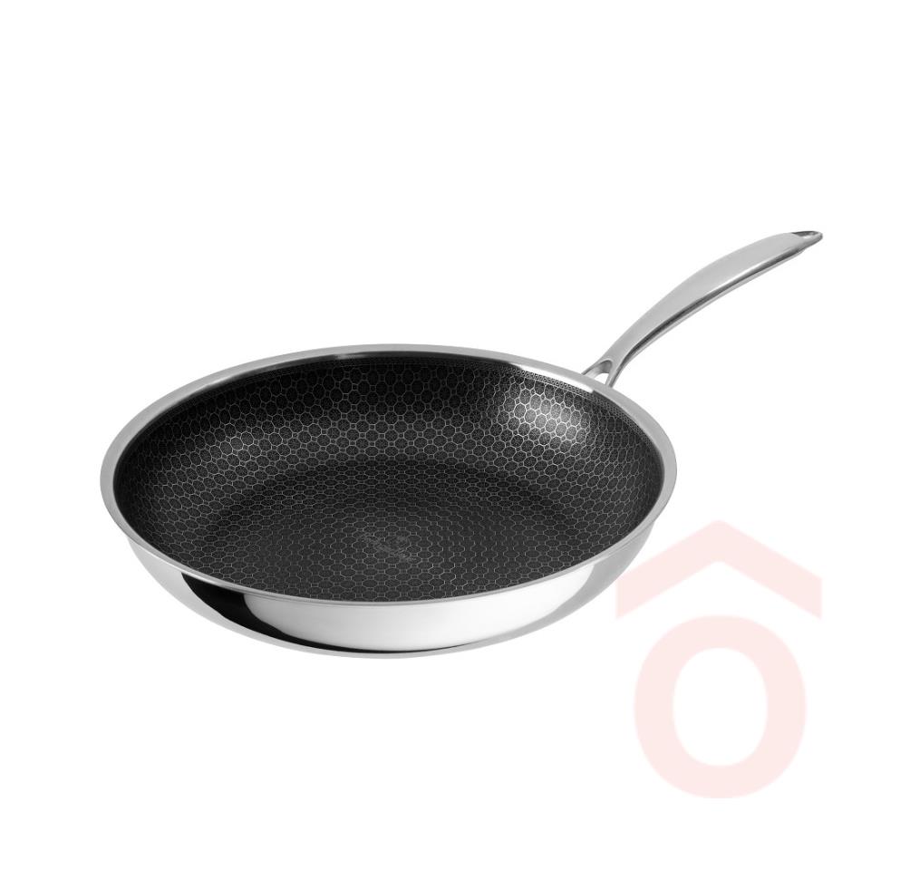 A Serpenyő az Eternal Collection része, amely modern és elegáns megjelenésével tökéletes választás a konyhába. Rozsdamentes acél alapanyagból készült, ETERNA bevonattal, amely garantálja a hosszú élettartamot és az egyenletes hőeloszlást. A serpenyő Ø30 cm méretű így ideális nagyobb étkezésekhez. Az Eternal bevonat örök élet garanciát biztosít a termékek számára, emellett karcálló és sütőbe is helyezhető. Indukciós alapú, így bármilyen főzőlapon használható. Emellett sütőben is használható akár +220°C-ig. Mosogatógépben is mosható.