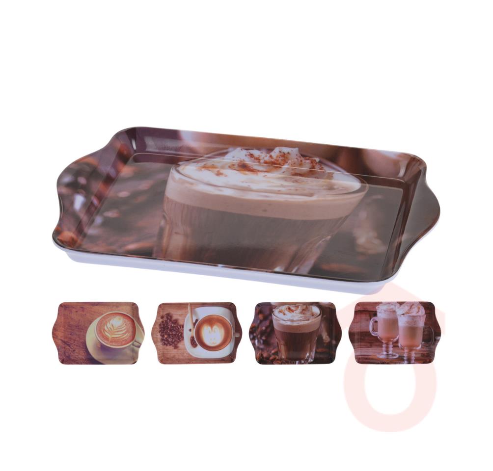 Kis méretű fotónyomattal (kávé minta) díszített tálca.