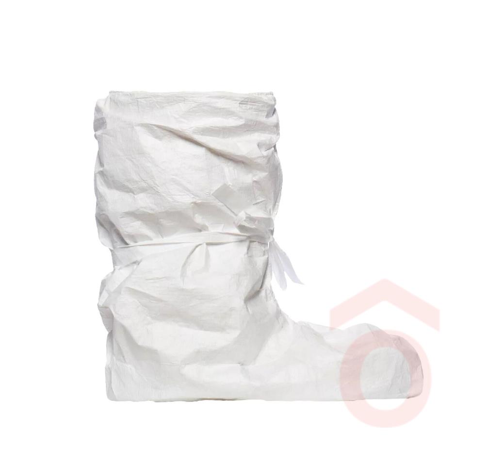 Kiváló Védelem Magas Szárú Lábbelire A Tyvek csizmavédő ideális megoldás a lábfej és lábszár védelmére, ha magas szárú lábbelire van szükség. A 45 cm-es magasságú, fehér, antisztatikus Tyvek anyag garantálja a kiváló védelmet, miközben könnyű és kényelmes viseletet biztosít. A lábszárnál található kötők segítenek a védőszemély biztonságos rögzítésében.
