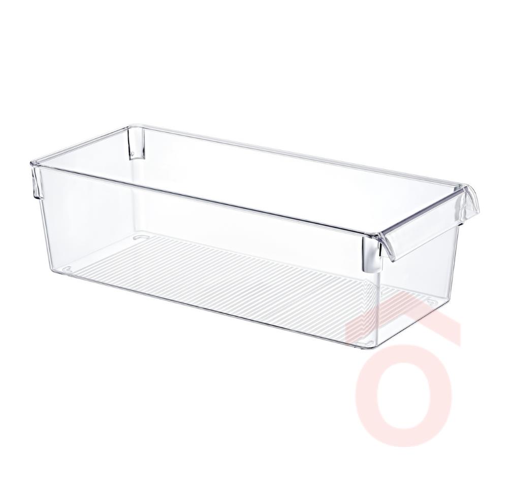 Rend a konyhában minden szinten! Ez a többféle méretben elérhető hűtő organizer praktikus megoldást kínál a mindennapi élelmiszertárolásra. Legyen szó friss zöldségről, gyümölcsről vagy snackekről, ez a strapabíró, átlátszó tárolódoboz segít rendezetten és átláthatóan tartani a hűtő- vagy konyhai polcokat. A sima felületének köszönhetően könnyen tisztán tartható – akár kézzel, akár mosogatógépben tisztítható.