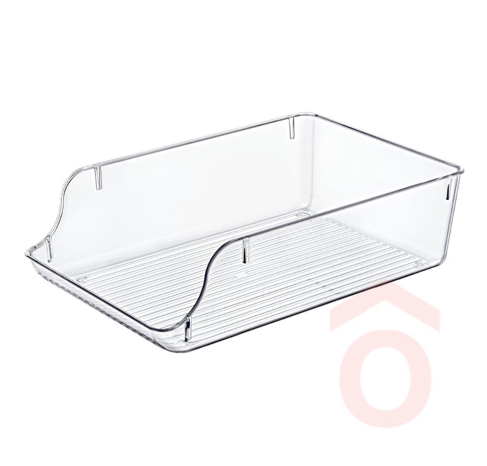 Rend a konyhában minden szinten! Ez a többféle méretben elérhető hűtő organizer praktikus megoldást kínál a mindennapi élelmiszertárolásra. Legyen szó friss zöldségről, gyümölcsről vagy snackekről, ez a strapabíró, átlátszó tárolódoboz segít rendezetten és átláthatóan tartani a hűtő- vagy konyhai polcokat. A sima felületének köszönhetően könnyen tisztán tartható – akár kézzel, akár mosogatógépben tisztítható.