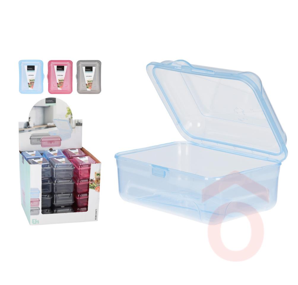 A doboz BPA-mentes műanyagból készült, így biztonságosan használható élelmiszerek tárolására. A színes változatok (kék, lila, rózsaszín) vidám megjelenést kölcsönöznek a mindennapoknak, akár munkába, iskolába vagy kirándulásra viszed magaddal.