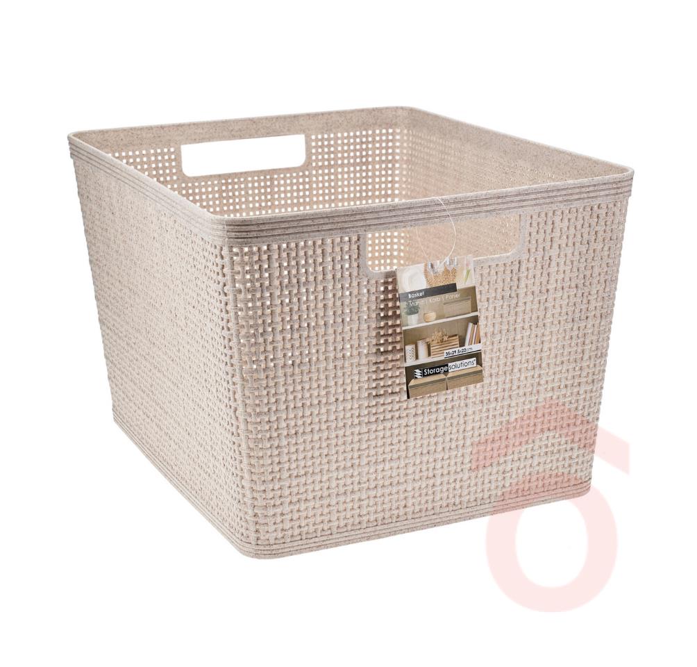 A tartós műanyagból készült, bézs színű woven design kosarak nemcsak praktikusak, hanem dekoratív kiegészítői is lehetnek otthonodnak. A készlet két darab kosarat tartalmaz, amelyeket használaton kívül egymásba helyezhetsz a helytakarékosság érdekében.