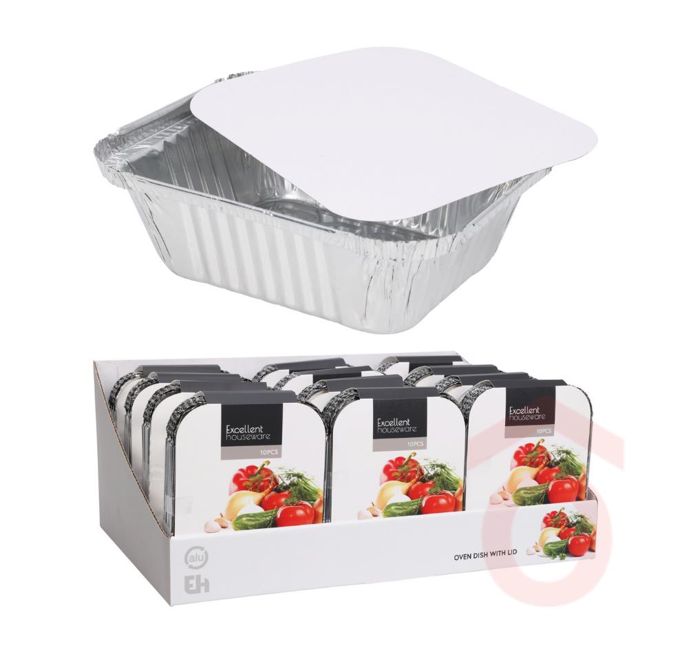 Kényelmes megoldás sütéshez és tálaláshoz! Ezek az eldobható alumínium sütőtálcák tökéletesek különféle ételek elkészítéséhez, legyen szó húsokról, rakott ételekről vagy süteményekről. A praktikus fedéllel ellátott tálcák megkönnyítik a tárolást és a szállítást, miközben frissen tartják az ételt.