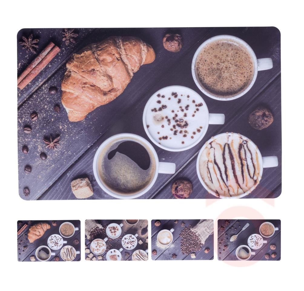 Hangulatos reggelek stílusos terítékkel! Ez a reggelizős mintával ellátott tányéralátét nemcsak praktikus, de dekoratív kiegészítője is lehet a konyhádnak vagy étkeződnek. A különböző minták finom reggeli hangulatot idéznek, a kávé, péksütemények és fűszerek részletgazdag ábrázolásával.