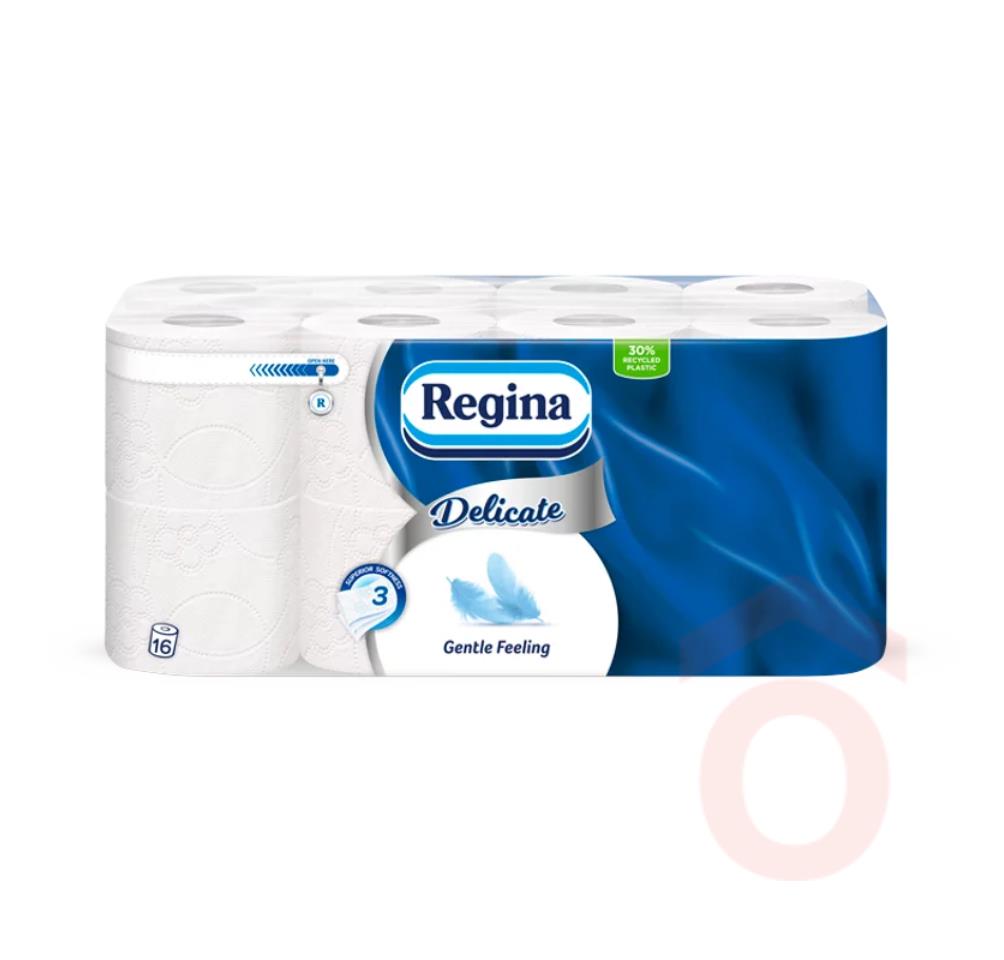 A Regina Delicate Gentle Feeling toalettpapír prémium puhasággal gondoskodik bőröd kényeztetéséről a nap minden pillanatában. Háromrétegű, extra puha kialakítása garantálja a kényelmes és bőrbarát használatot.