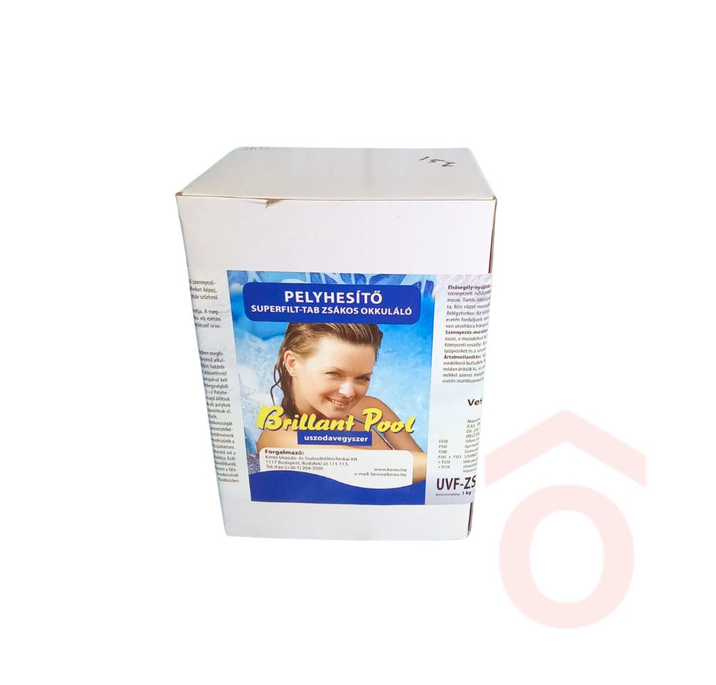 Praktikus textilzsákba helyezett tablettás pelyhesítőszer, amely hatékonyan megszünteti a medencevíz opálosságát. A szűrőberendezések által visszaengedett apró szennyeződéseket a pelyhesítőszer hozzátapadással nagyobb szemcsévé alakítja, így azok már fennakadnak a szűrőn.