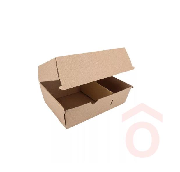 Ez a válaszfallal ellátott, natúr karton hamburgeres doboz ideális megoldás többféle étel egyidejű csomagolására. A belső elválasztónak köszönhetően a hamburger és a köret (pl. hasábburgonya, saláta) külön részekbe helyezhető, így megőrzi frissességét és esztétikus megjelenését.
